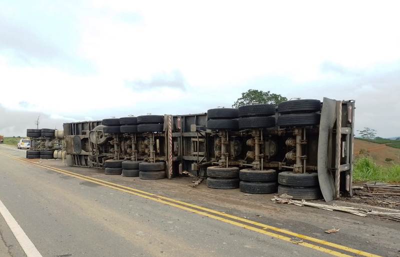 As carretas envolvidas tombaram e ocuparam parte da pista. Os blocos, que pesam dezenas de toneladas, ficaram à margem da rodovia. A responsabilidade para retirar as pedras do local é da empresa que as comprou.