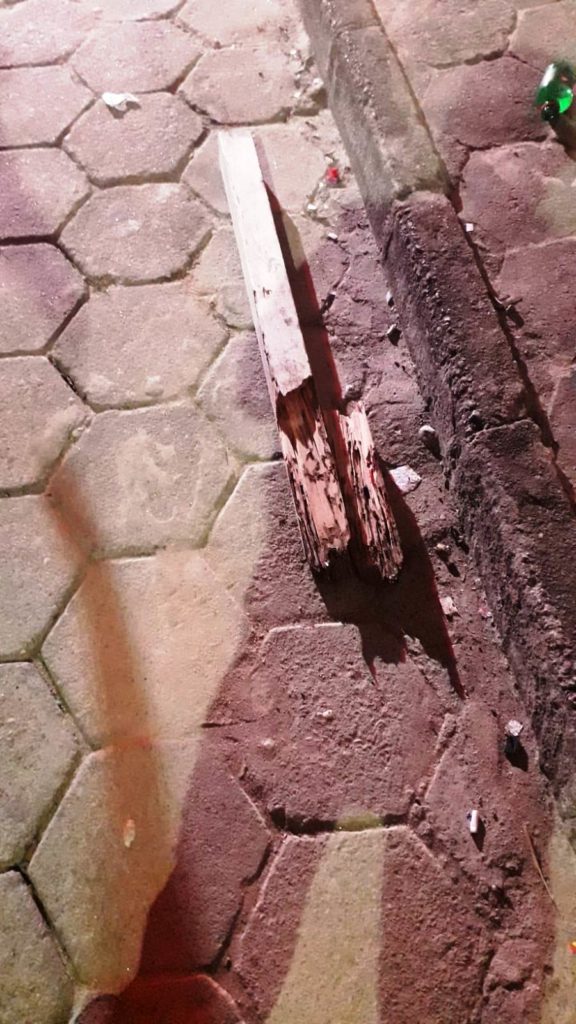 Próximo ao corpo os policiais encontraram um pedaço de madeira (foto) que poderia ter sido usado no crime.