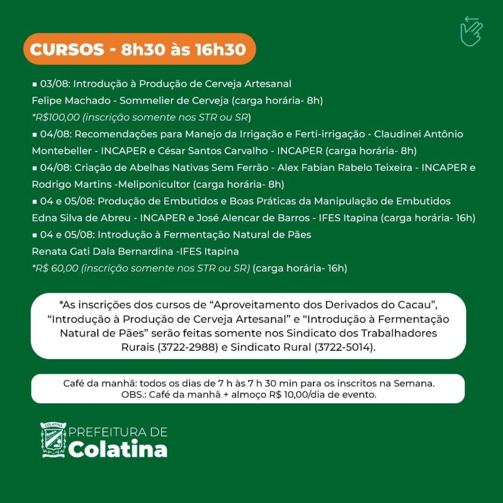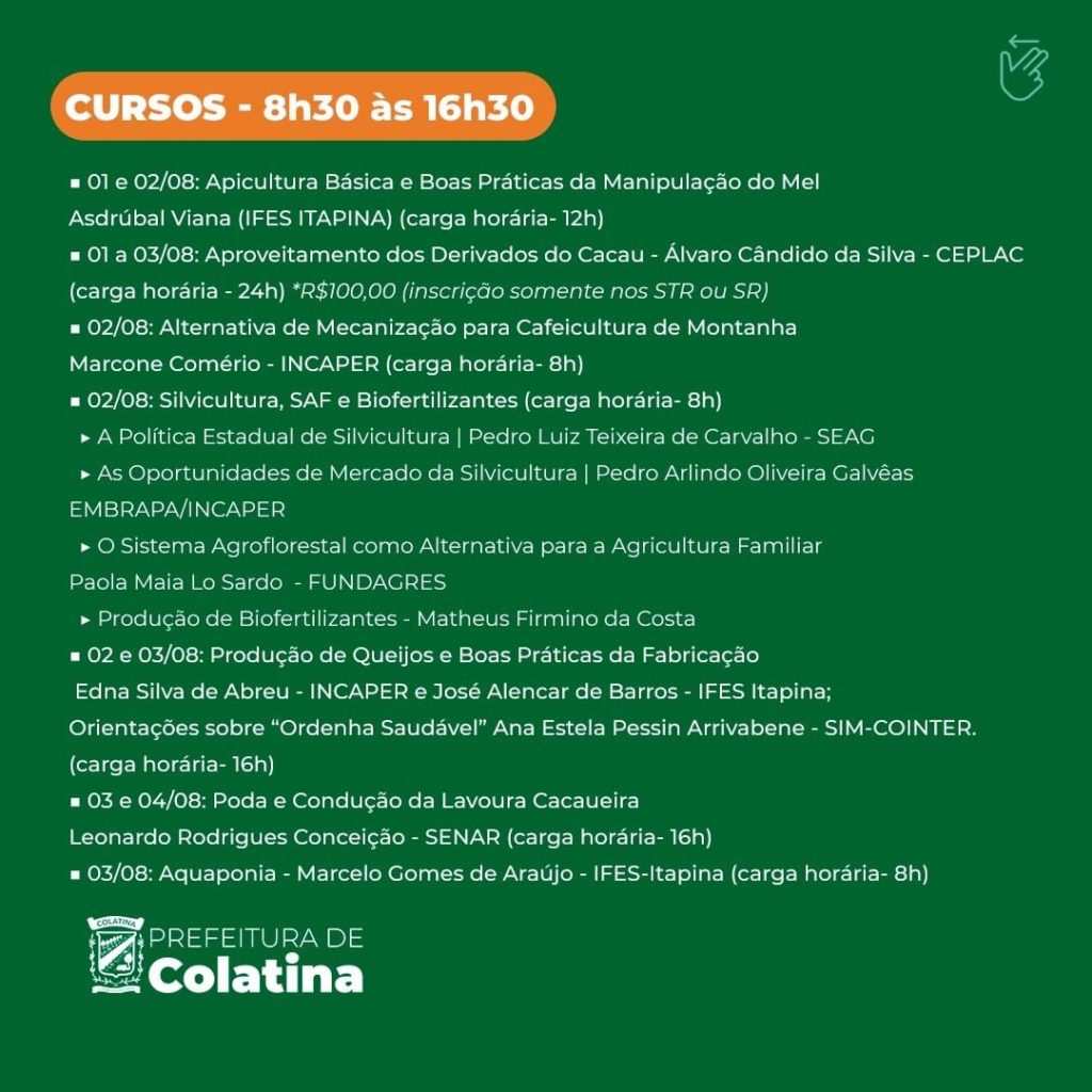O evento acontece no Ifes de Itapina e está com inscrições abertas para diversos cursos, entre eles: