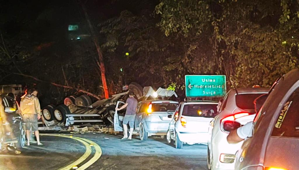 De acordo com informações da Polícia Militar, que registrou a ocorrência, o motorista do caminhão teria perdido o controle em uma curva, colidiu em uma mureta, depois bateu em um barranco e acabou tombando.