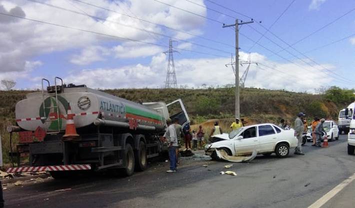 Acidente envolveu dois caminhões e um veículo de passeio, na manhã desta sexta-feira (14), na BR-259, próximo ao bairro de Mascarenhas, no município de Baixo Guandu, Noroeste do Estado.