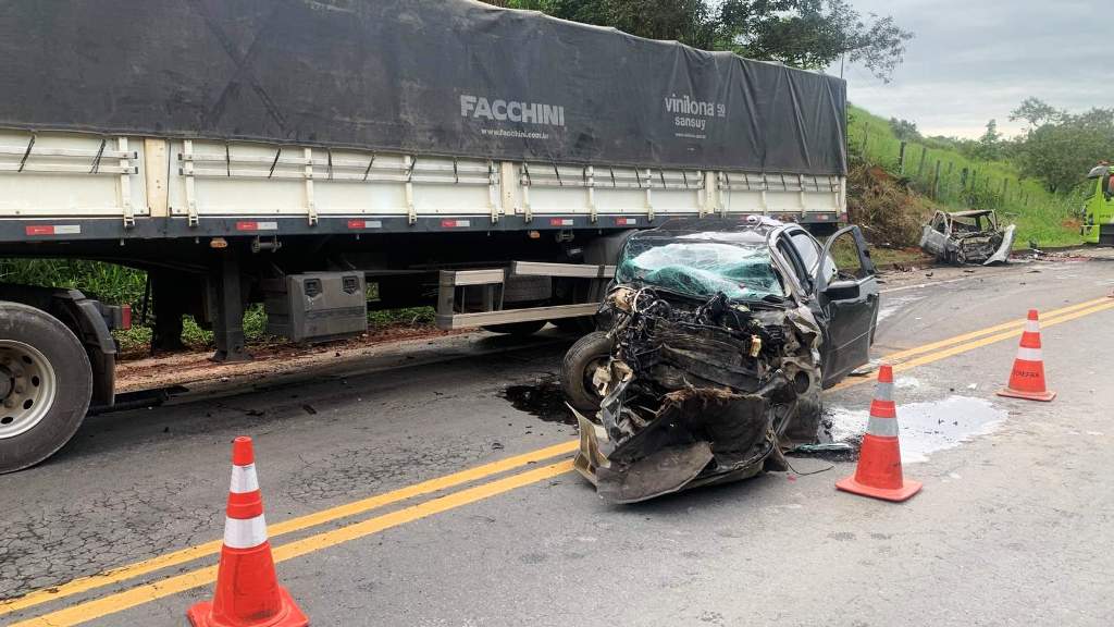 O veículo Siena seguia no sentido Norte e tentou ultrapassar a carreta. O veículo Ford Fusion, que seguia no sentido contrário, tentou desviar, mas perdeu o controle, rodou na pista e colidiu com o Siena.