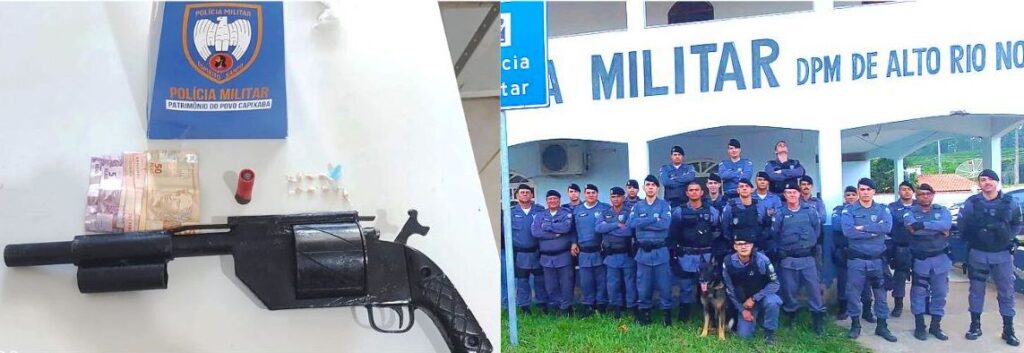 Nas diligências, foram apreendidas pedras de crack, um papelote de cocaína e uma arma de fogo de fabricação caseira, calibre .12, com uma munição no tambor.