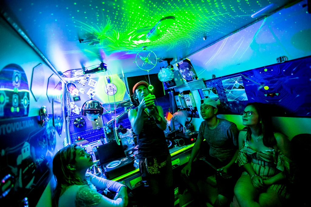 Com infográficos, iluminação e decoração especial – feita com materiais reciclados e objetos com princípios de magnetismo e eletricidade como laser e bola de plasma -, o veículo é uma atração à parte, que encanta pessoas de todas as idades e mostra, de maneira descontraída e divertida, como a luz do sol se transforma em energia elétrica.