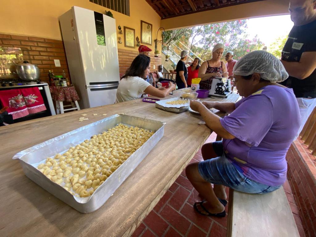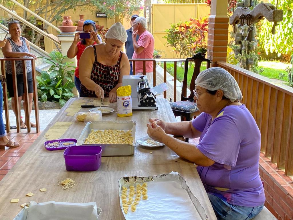 Moradores de Itapina estão animadas para receber os turistas em mais um evento promovido pela Prefeitura de Colatina. Uma das anfitriãs mais animadas e que recebe todos os turistas de braços abertos é Tânia Becalli. Ela conta que está preparando muito cappelletti, uma tradição que aprendeu com a mãe Claudina Binda. “Eu comecei primeiro a aprender a fazer a taiadela, e depois de um tempo, o cappelletti. Faço mais para vender já pronto para comer na hora, e tenho muitos clientes. No evento de sábado estou fazendo bastante. Não vai faltar cappelletti pra ninguém.”