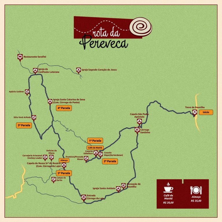 O passeio na Rota da Pereveca será neste domingo, dia 4 de junho, com saída às 7h30. O passeio terá opção de café da manhã e almoço.