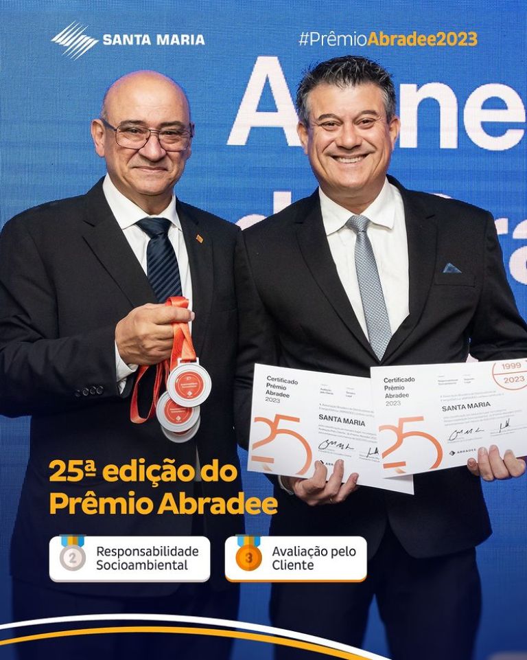 No último dia 28 de julho, foi realizada em Brasília a 25ª edição do Prêmio Abradee. A Santa Maria foi finalista em todas as categorias de “Empresas com menos de 500 mil consumidores”.