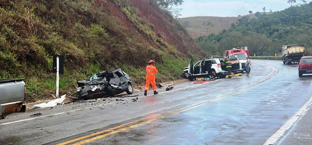 Três pessoas morreram e duas ficaram gravemente feridas após uma batida entre dois carros, por volta das 8h30 da manhã desta segunda-feira (21), na BR-381, no trecho que liga Governador Valadares a Periquito, no Leste de Minas Gerais.