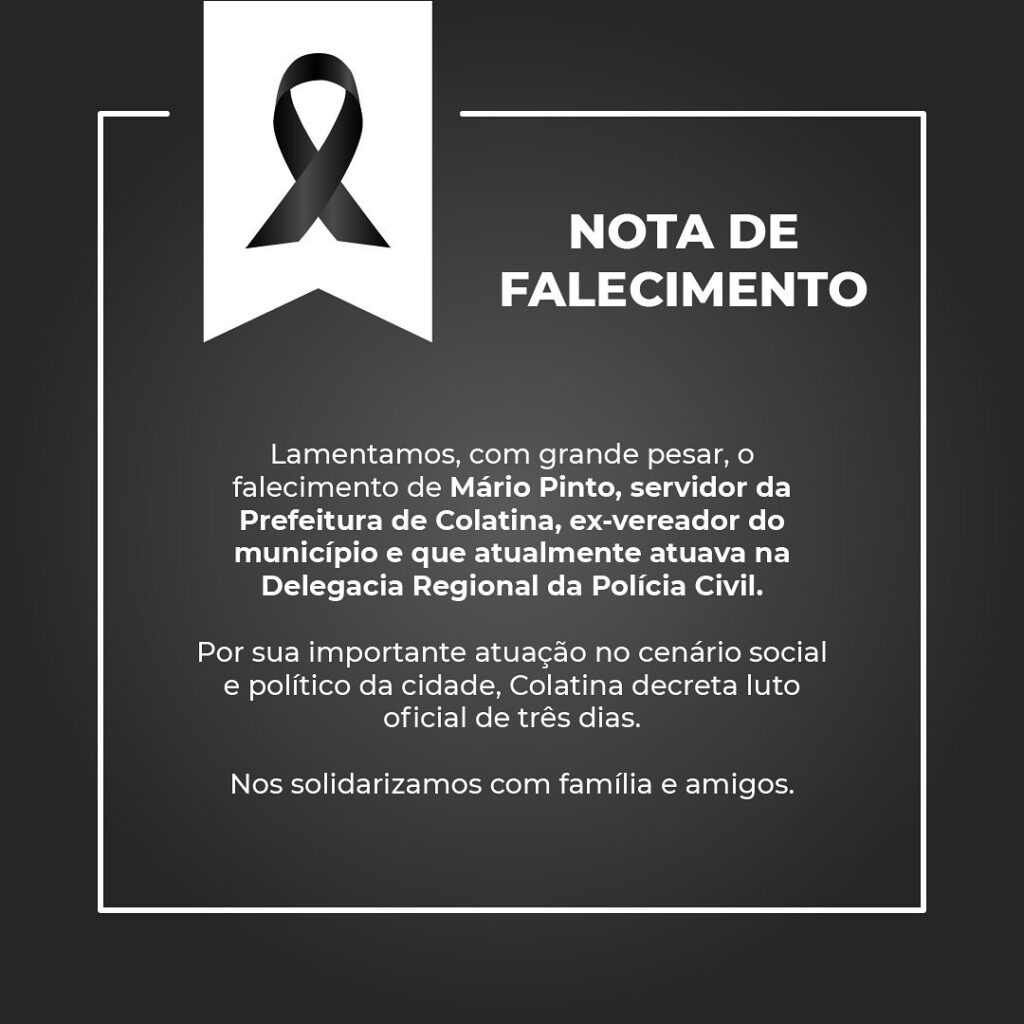 A prefeitura de Colatina emitiu nota de pesar