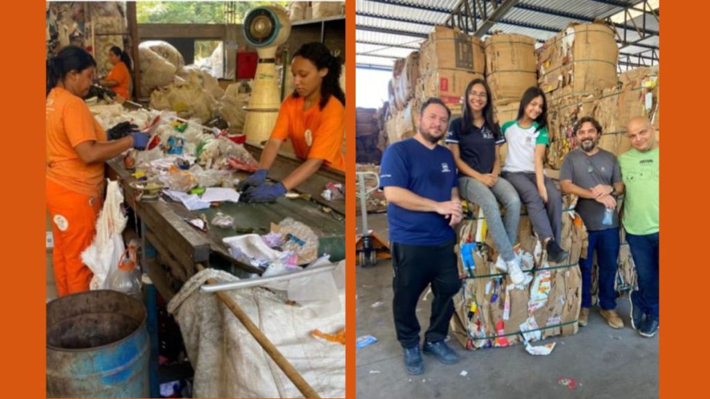 Os alunos tiveram a oportunidade de compreender o ciclo sustentável, destacando a inclusão social e a importância da coleta seletiva.