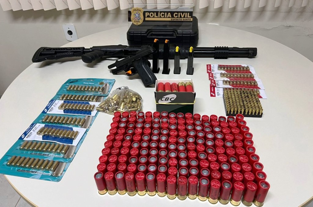 Ao todo, foram apreendidas uma espingarda calibre 12 municiada, uma pistola .40 municiada, 140 munições calibre 9mm, 185 munições calibre 12, 141 munições calibre .40, além de cinco carregadores, dois de calibre 9mm e três de calibre .40.