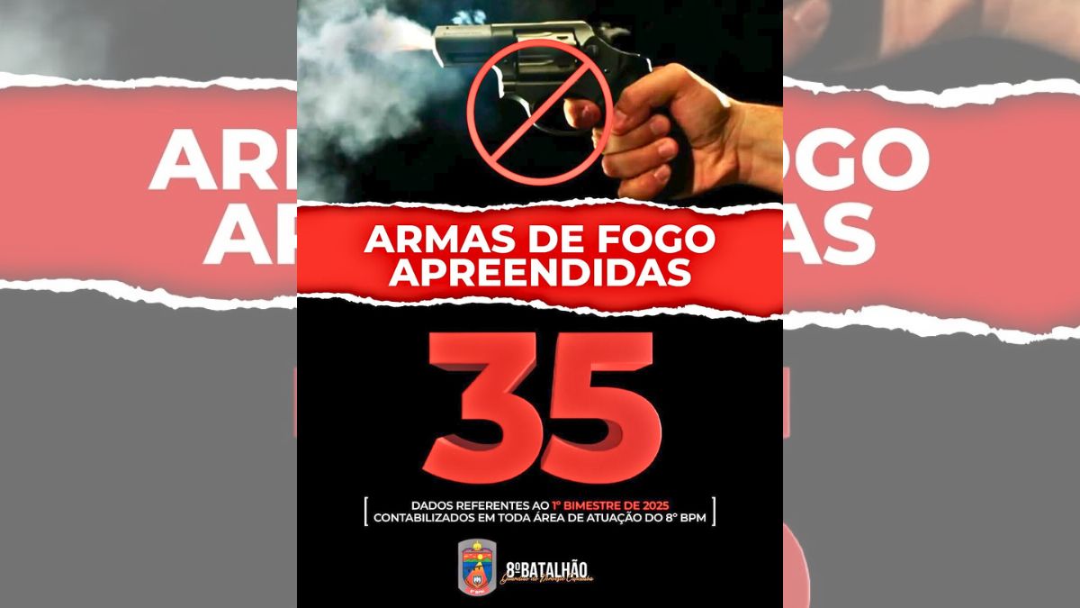 Em nota divulgada em suas redes sociais nesta semana, o 8º Batalhão de Polícia Militar (BPM) do ES, sediado em Colatina, informou a apreensão de 35 armas de fogo durante operações realizadas nos dois primeiros meses de 2025. De acordo com o comunicado, entre os armamentos confiscados estão sub metralhadoras, revólveres e pistolas, a maioria em posse de criminosos ligados ao tráfico de drogas e a organizações criminosas.