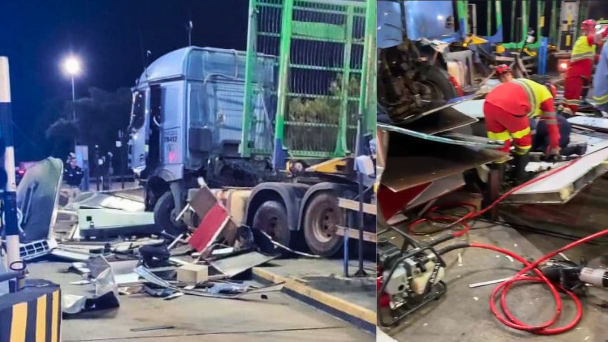 Na madrugada desta quinta-feira (13), uma operadora de pedágio da Ecovias 101 teve um livramento ao escapar de um acidente grave na BR-101, em Aracruz, no Norte do Espírito Santo. Por volta das 01h11, uma carreta invadiu a cabine de pedágio localizada no km 171,7 da rodovia, destruindo completamente a estrutura. A funcionária, que estava no local no momento da colisão, não sofreu ferimentos graves e foi encaminhada consciente para um hospital da região, onde recebe atendimento médico.