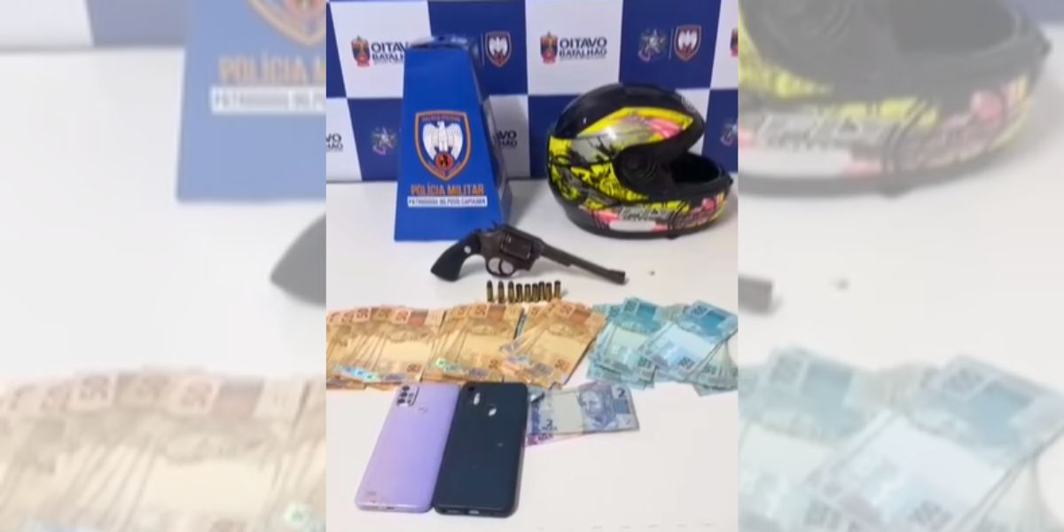 A Polícia Militar prendeu o homem em flagrante e apreendeu um revólver calibre .38 com cinco munições deflagradas, encontrado sob um carro estacionado. Dentro do veículo do suspeito, foram localizados R$ 5.057 em dinheiro, três munições intactas e um celular.