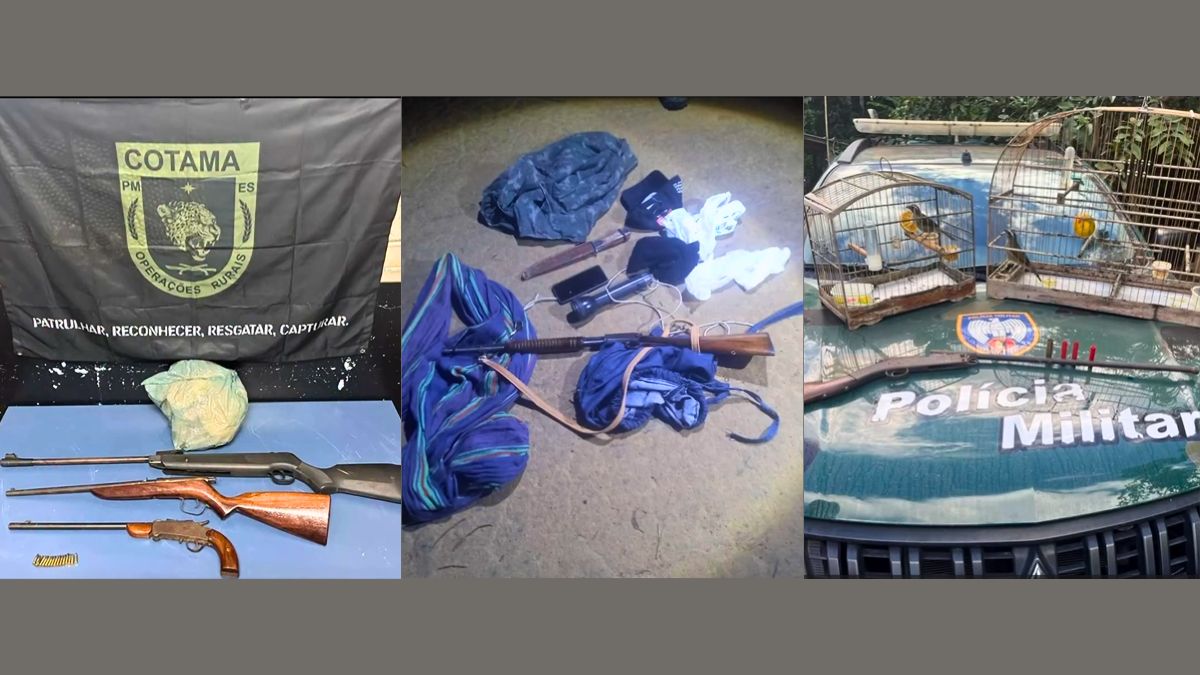 Nesta terça-feira (17), a Polícia Militar Ambiental realizou quatro operações distintas em municípios do Espírito Santo e apreendeu cinco armas de fogo, munições, animais silvestres e diversos materiais utilizados na prática de caça ilegal.