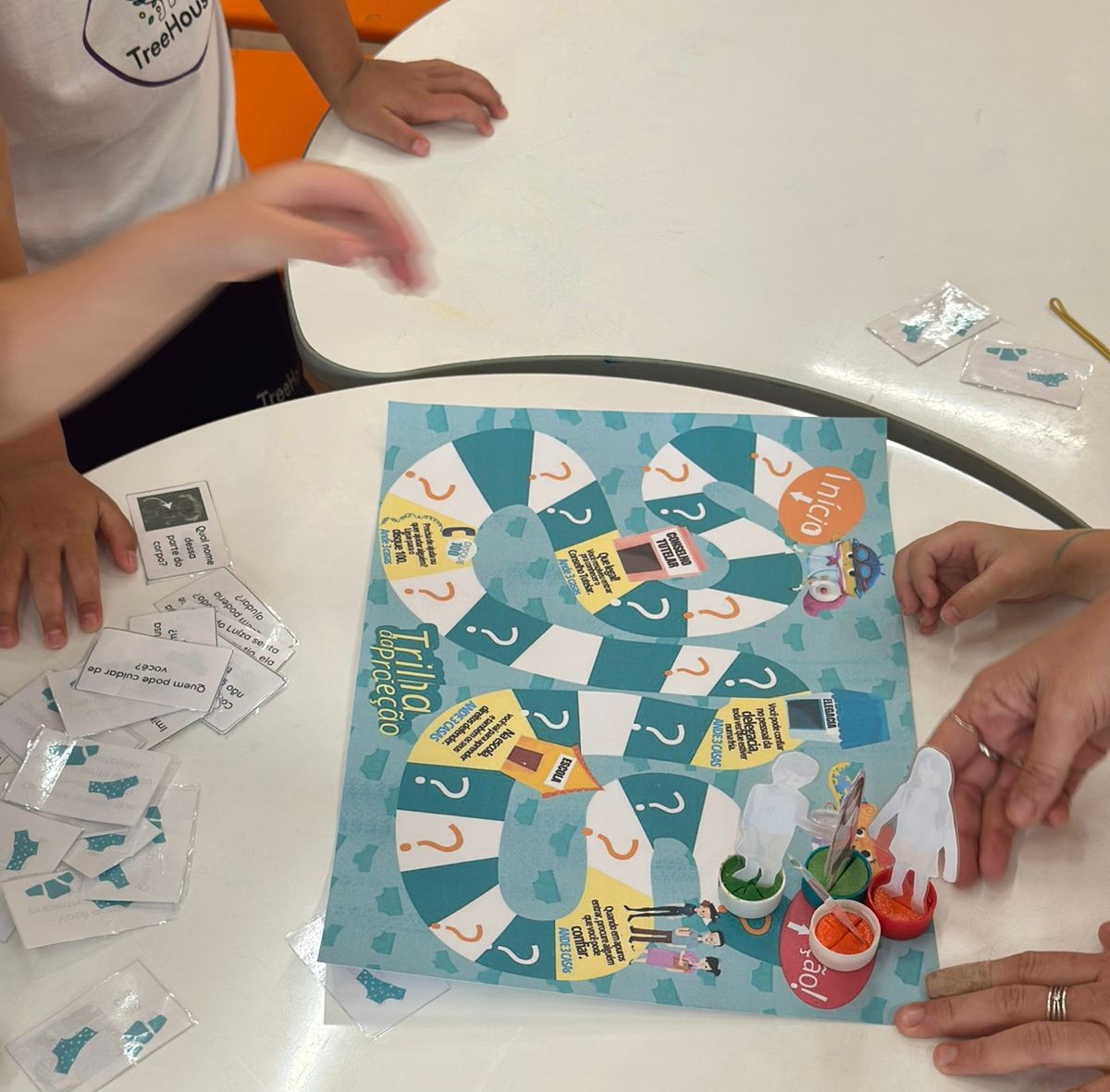 Segundo Bárbara, o jogo foi criado para consolidar, de forma lúdica, os aprendizados adquiridos ao longo das atividades. “Falamos sobre rede de confiança, nome científico das partes íntimas, o direito de dizer não, o toque do sim e o toque do não. O jogo vem com perguntas relacionadas ao que foi trabalhado e os alunos respondem com base no que aprenderam. É uma forma de reforçar o conteúdo sem medo, sem tabu, mas com responsabilidade”, completa.