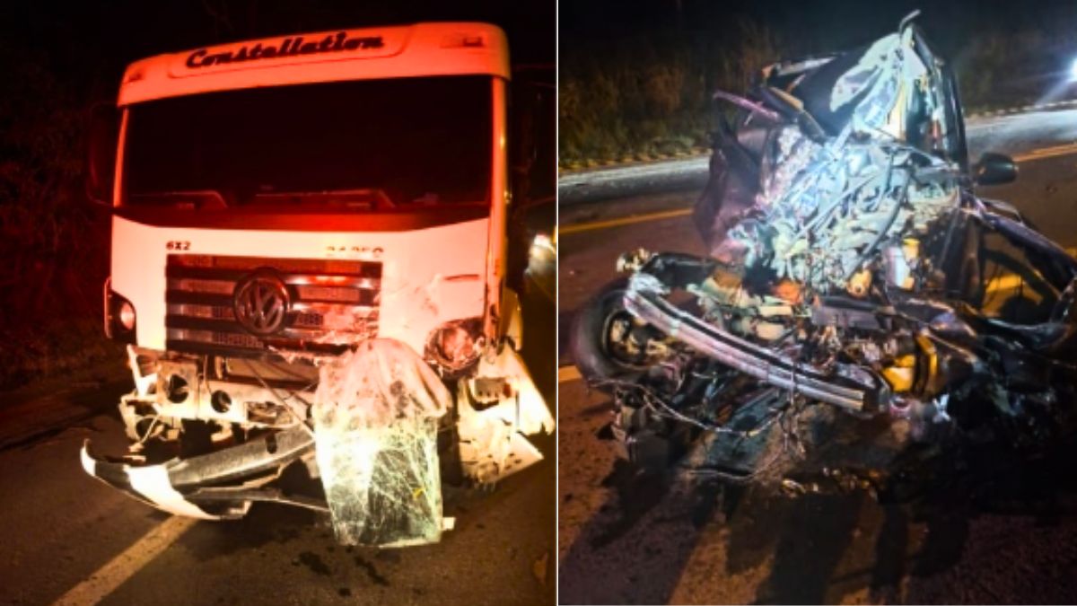 São Mateus, no Norte do Espírito Santo. Segundo a Polícia Rodoviária Federal (PRF), a colisão frontal envolveu um automóvel Ford Fiesta e um caminhão Volkswagen, por volta das 21h.