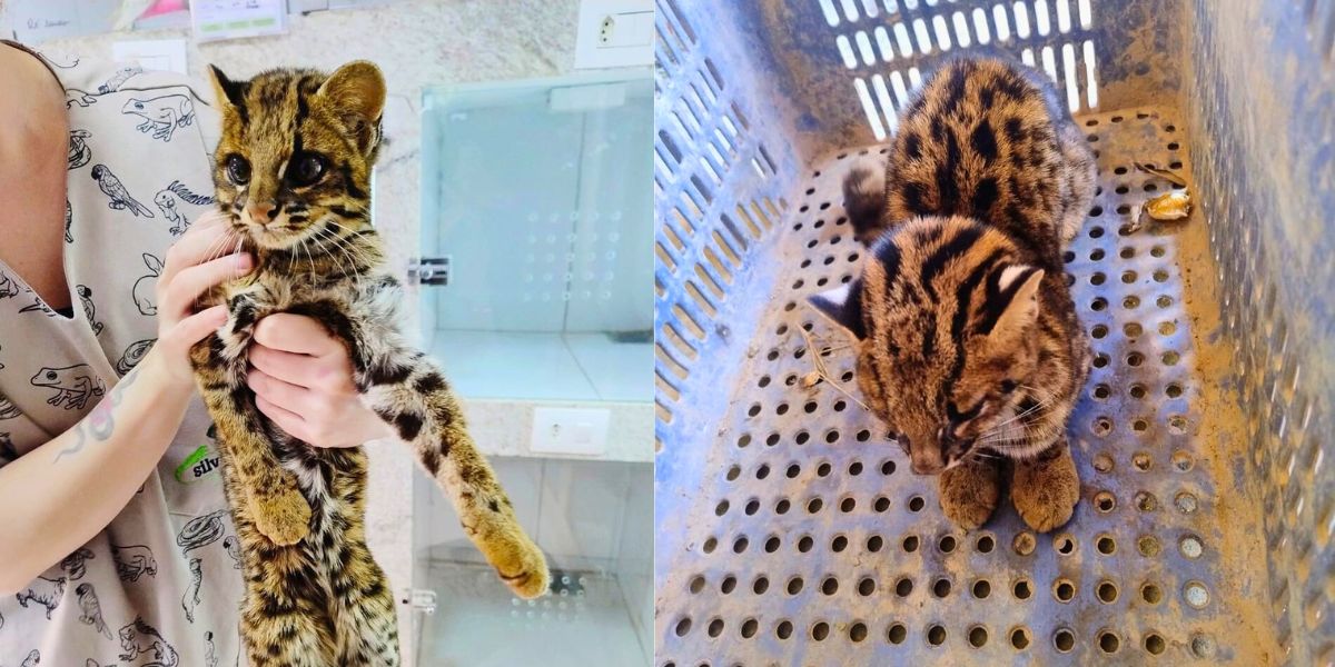 A jaguatirica foi resgatada e encaminhada ao Hospital Veterinário de Animais Silvestres, em Vila Velha, onde receberá os cuidados necessários.
