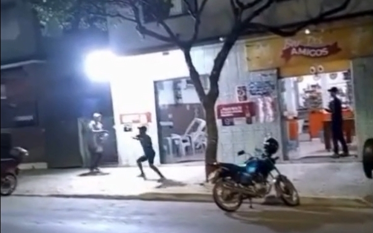 Momentos depois, o homem saiu do local, foi até um carro estacionado nas proximidades e retornou com a motosserra em funcionamento. A cena foi registrada por frequentadores e compartilhada nas redes sociais.