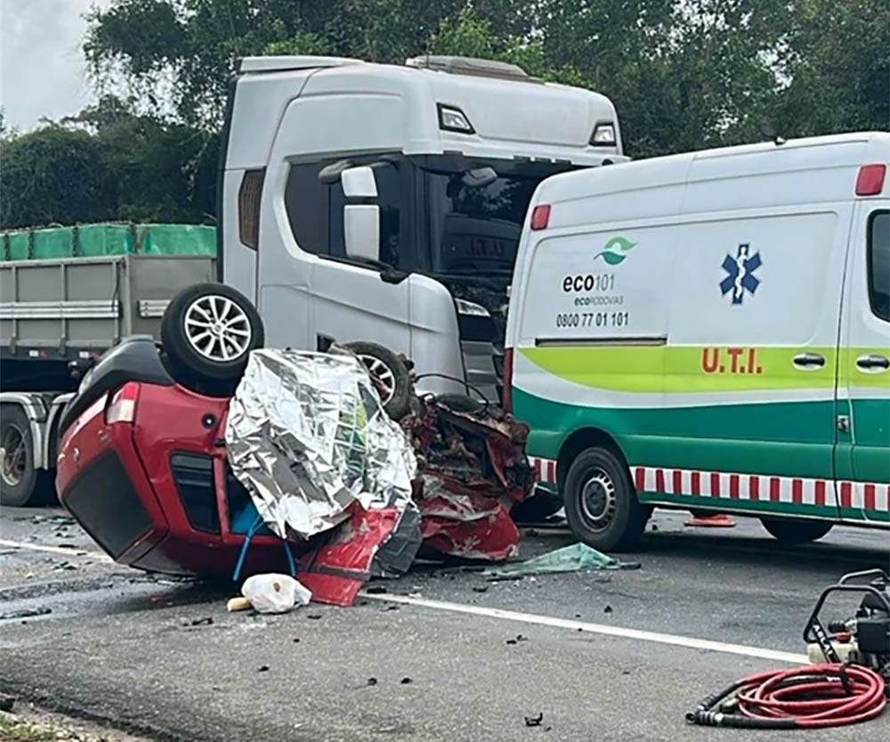 Um homem faleceu em um acidente de trânsito na tarde deste sábado (13), no km 114 da BR-101, na zona rural de Sooretama, no Norte do Espírito Santo. De acordo com informações apuradas no local pela repórter Rosi Bredowf, da TV Gazeta Norte, a colisão envolveu um automóvel de passeio com placas de Viana e um caminhão que transportava granito.