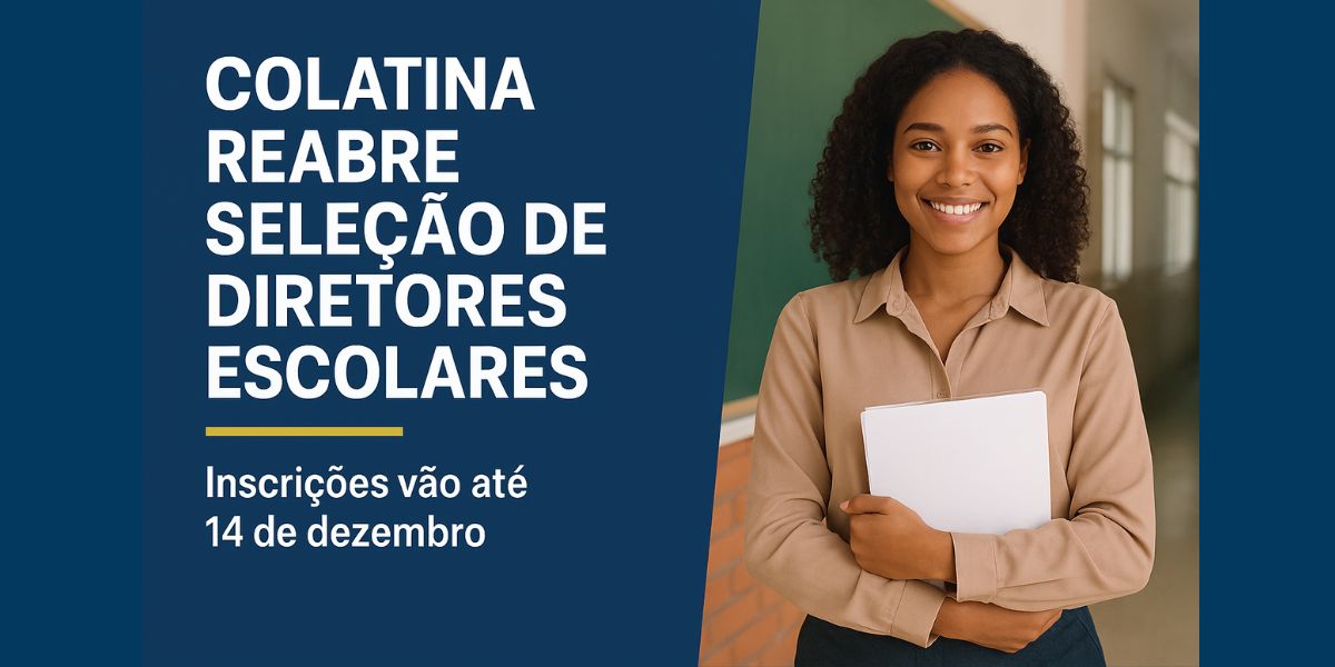 A Prefeitura de Colatina, por meio da Secretaria Municipal de Educação, anunciou nesta quarta-feira (19) a reabertura do Processo de Seleção de Diretores Escolares referente ao Edital nº 004/2025. A medida garante um novo prazo para que profissionais da educação participem da escolha de gestores das unidades da rede municipal de ensino.