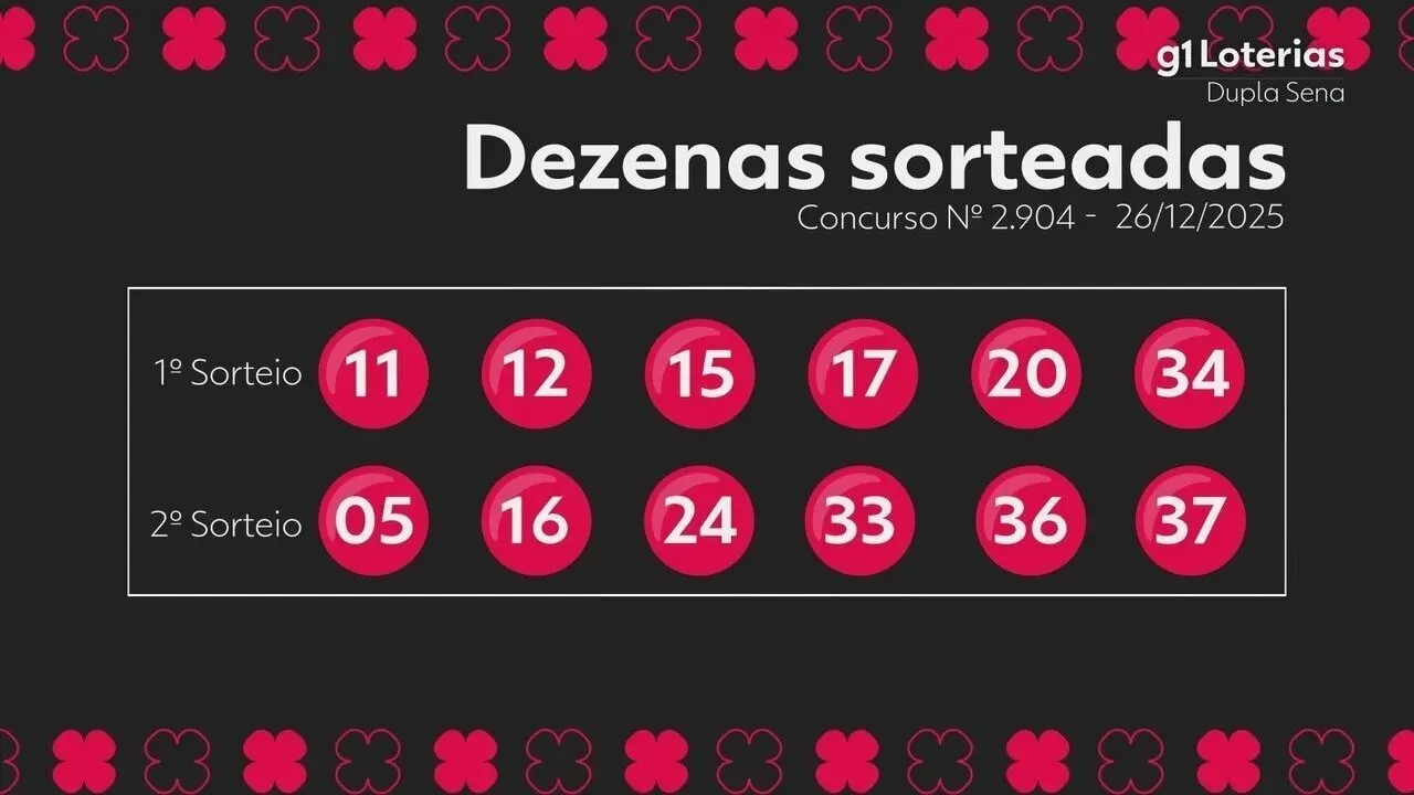 O concurso 2904 da Dupla Sena, realizado nesta sexta-feira (26), não registrou apostas com os seis números sorteados em nenhum dos dois sorteios. Com isso, o prêmio principal acumulou, e a Caixa Econômica Federal estima que o próximo concurso, marcado para segunda-feira (29), possa distribuir R$ 4,5 milhões.