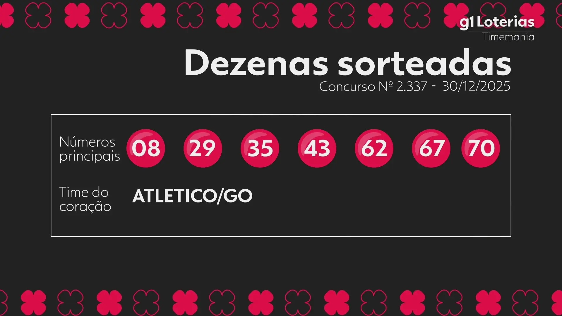 O sorteio da Timemania, concurso 2337, realizado nesta terça-feira, 30 de dezembro, não apresentou acertadores para a faixa principal de 7 números. A ausência de ganhadores no prêmio máximo eleva a estimativa para o próximo concurso.