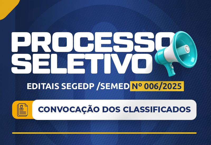 Os convocados devem comparecer à SEGEDP, localizada na Avenida Getúlio Vargas, nº 196, Centro, para apresentação da documentação exigida em edital, que comprova a habilitação profissional e demais requisitos para o cargo ao qual foram classificados. A não apresentação dos documentos dentro do prazo estabelecido poderá resultar em desclassificação.