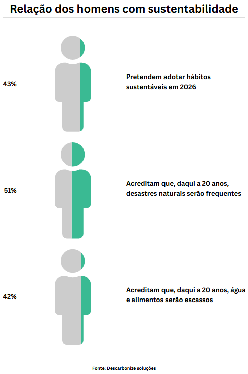 Uma pesquisa da Descarbonize Soluções, empresa especializada em energia solar e sustentabilidade, revelou que as mulheres estão mais decididas a transformar seu cotidiano rumo a uma vida sustentável. Quando perguntadas se pretendem mudar algum hábito em 2026 para viver de maneira mais consciente, 52% das mulheres afirmaram já ter planos concretos, enquanto, entre os homens, esse índice cai para 43%.