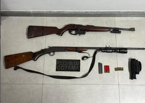Ao chegarem ao endereço indicado, os policiais militares confirmaram a veracidade das informações. No local, foram encontrados itens que indicam o suporte à atividade de caça, incluindo uma espingarda calibre .22 equipada com mira a laser, munições de calibres .22 e 36, além de carregador e um monóculo de visão noturna. Uma segunda espingarda, de calibre 36, foi entregue voluntariamente pelo proprietário aos agentes.