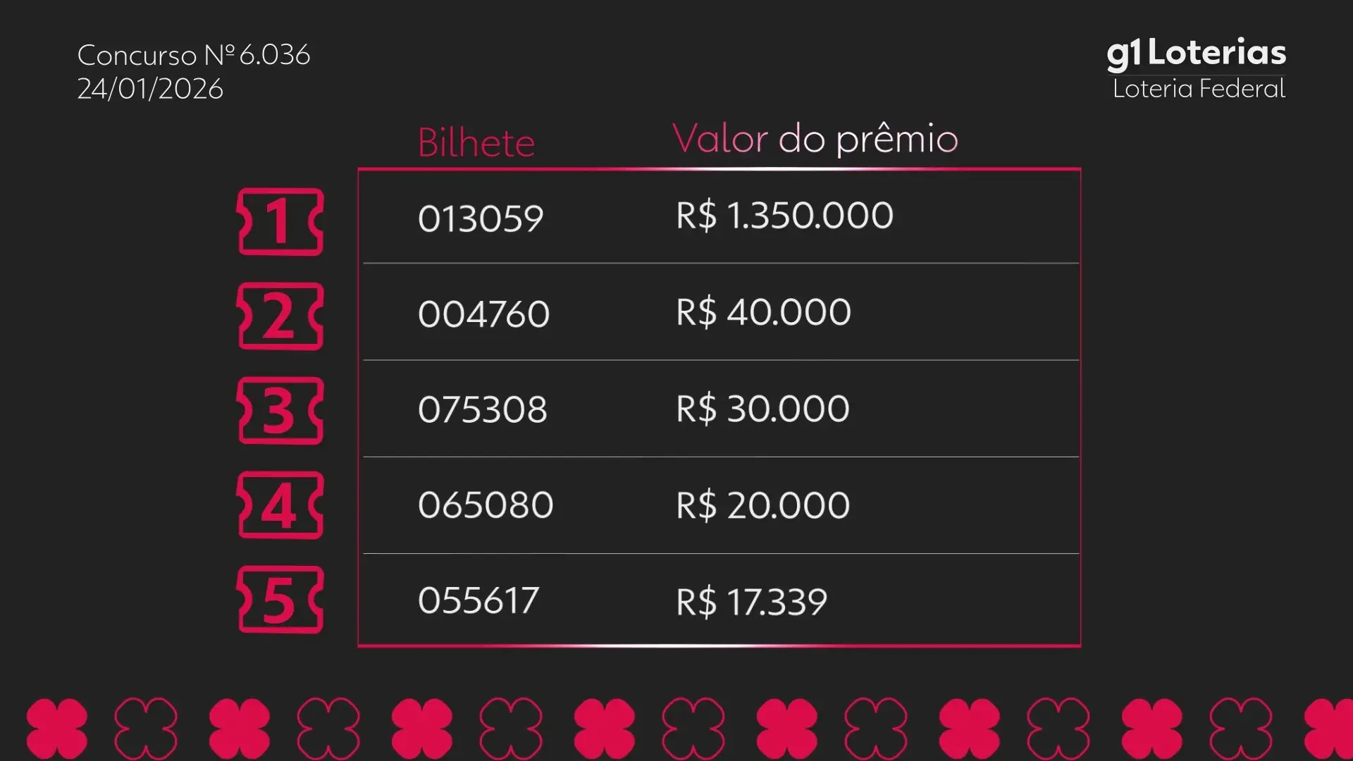 Resultado da Loteria Federal Concurso 6036 Divulgado