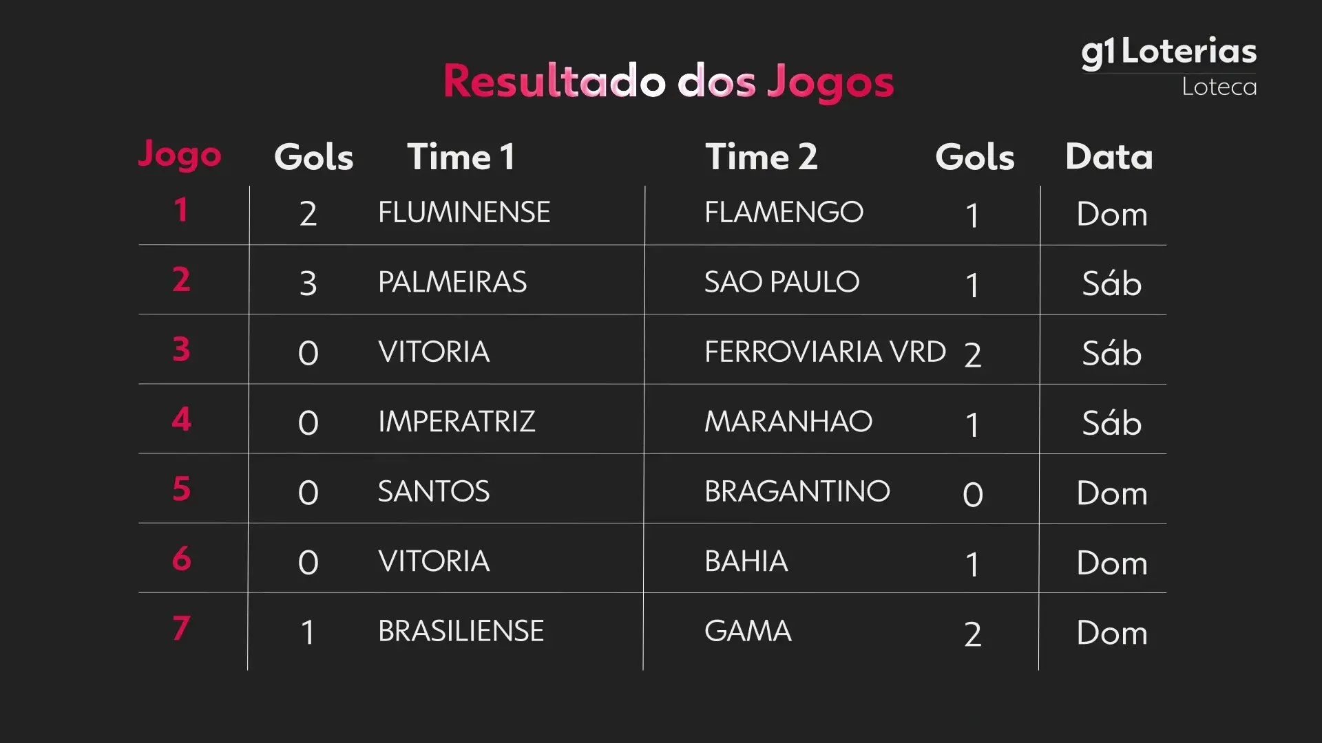 As apostas são encerradas às 14h de sábado. Os prêmios são destinados às apostas que acertarem 14 ou 13 resultados.